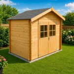 Caseta de Pino Nórdico de 28mm de grosor, provisto de una puerta doble con cristales de 4mm, la altura máxima es de 232 cm, siendo la altura de la pared lateral de 185.1cm, tejado a 2 aguas, Fabricada en lamas de madera machimbrada para un buen ajuste, logrando un ajuste machi-hembra a diferente altura, logrando una estructura solida. El tejado de esta caseta, esta conformado por tableros de OSB, que son perfectos para construcción, por sus características técnicas, la resistencia y durabilidad de este tipo de materiales, es muy superior al aglomerado, que habitualmente es utilizado por otros fabricantes. Tiene una puerta doble de apertura al exterior de medidas 142X173 cm, con ventanas fijas de 4mm de cristal, la puerta va provista de cerradura y manilla.