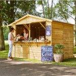 El Kiosco bsc, es un puesto de mercado de 3m x 2,5m. Muestre sus productos en una caseta elegante mientras está cubierto, la madera de pino impregnada de 16 mm se encuentra en un marco sólido con un techo de vértice tradicional.